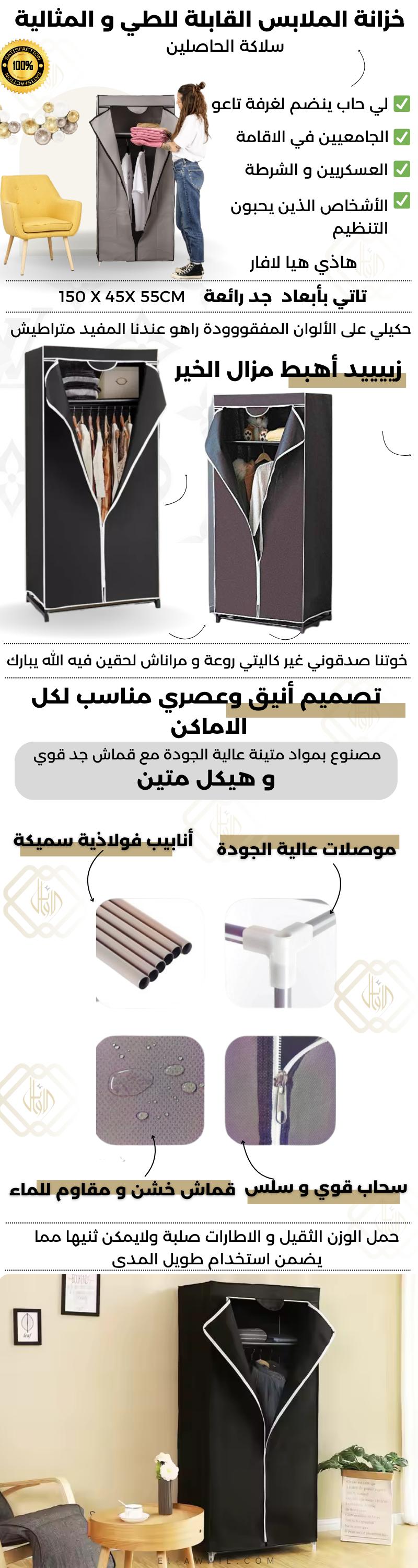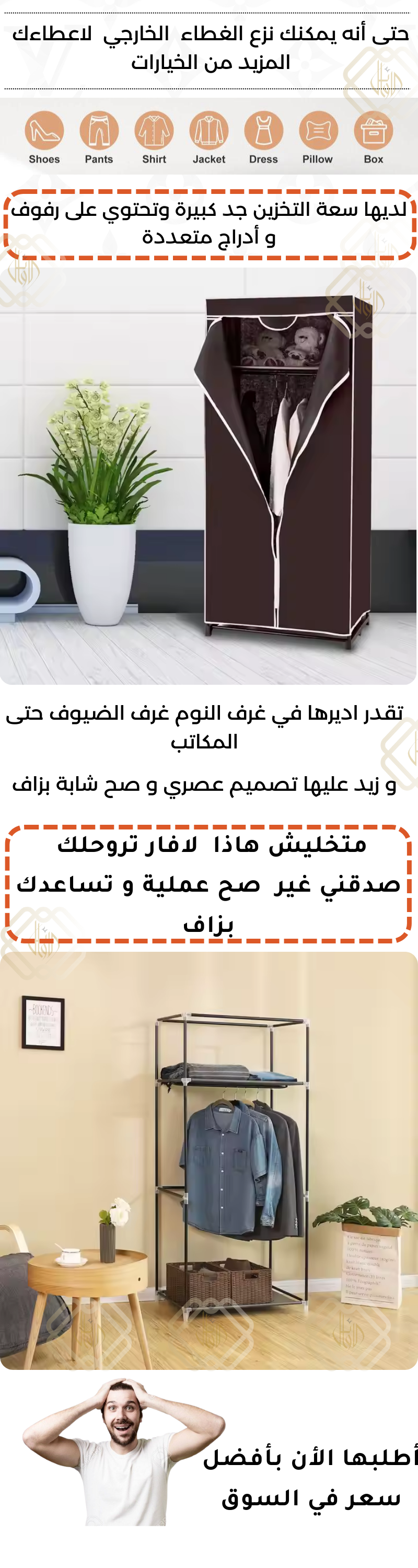 خزانة ملابس من القماش مع أرفف و غطاء قماشي